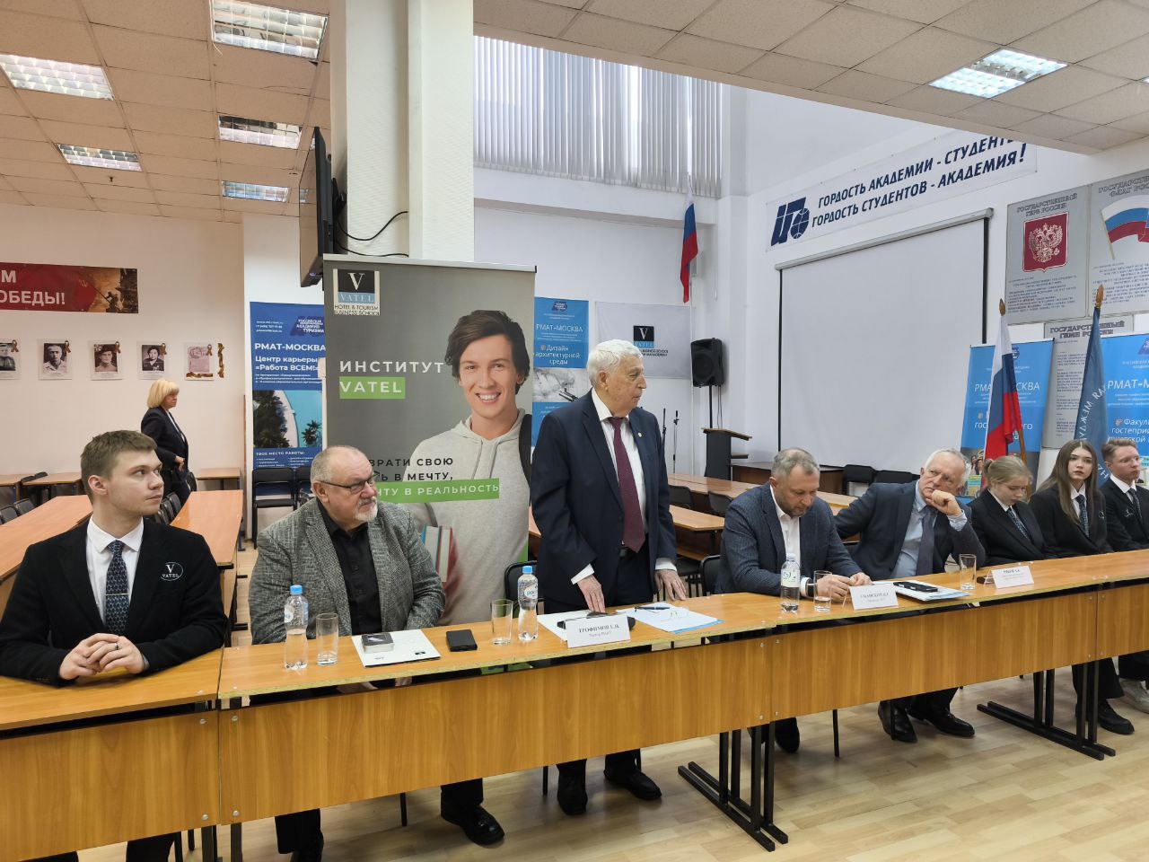 В своем выступлении Президент РСТ И.Г. Уманский высоко оценил потенциал представленной международной программы «Ватель-РМАТ», по-хорошему позавидовав настоящим студентам, которые имеют такую уникальную возможность – учиться и путешествовать. Он отметил, что уже на старте, имея за плечами такой колоссальный опыт в гостеприимстве, в том числе зарубежный, выпускники РМАТ имеют более выгодные позиции и преимущества при трудоустройстве.