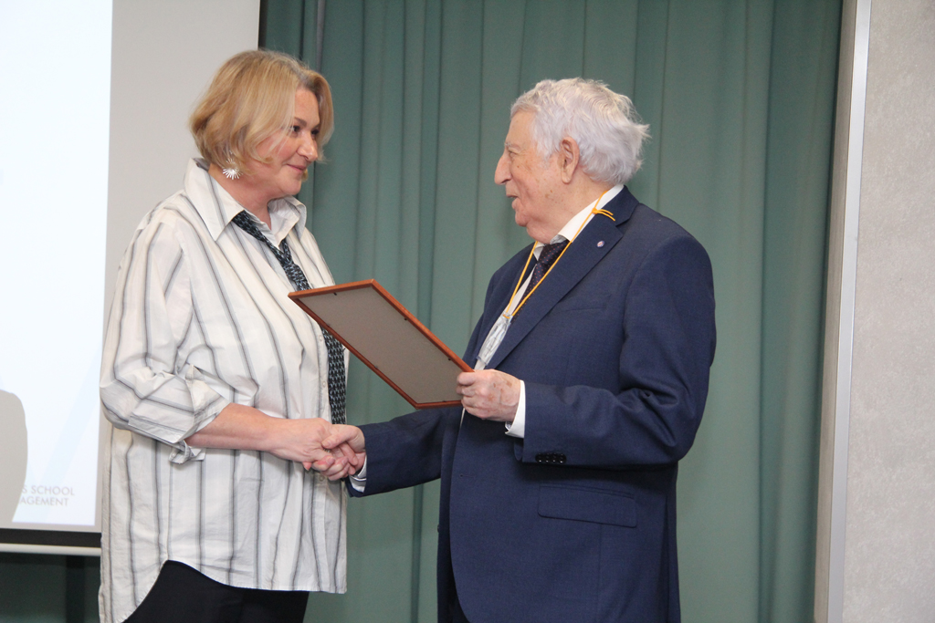 Мы готовим не просто менеджеров, а будущих лидеров индустрии – подчеркнул ректор. Евгений Николаевич вручил почётную грамоту кафедре, возглавляемой Алексеем Константиновичем Рябовым. Потом состоялась церемония награждения ректором тех, кто на протяжении многих лет вносил неоценимый вклад в развитие программы.
