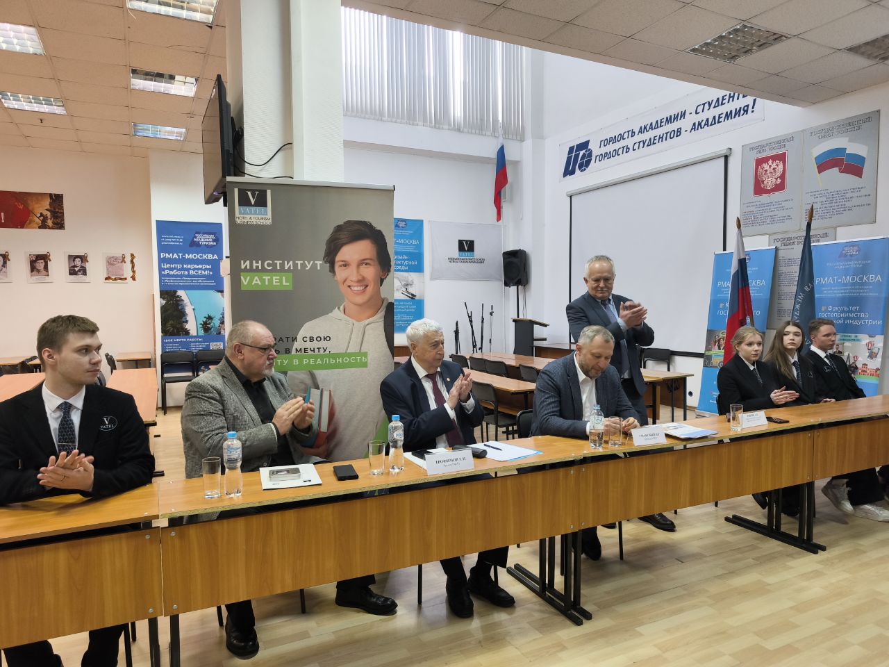 В своем выступлении Президент РСТ И.Г. Уманский высоко оценил потенциал представленной международной программы «Ватель-РМАТ», по-хорошему позавидовав настоящим студентам, которые имеют такую уникальную возможность – учиться и путешествовать. Он отметил, что уже на старте, имея за плечами такой колоссальный опыт в гостеприимстве, в том числе зарубежный, выпускники РМАТ имеют более выгодные позиции и преимущества при трудоустройстве.