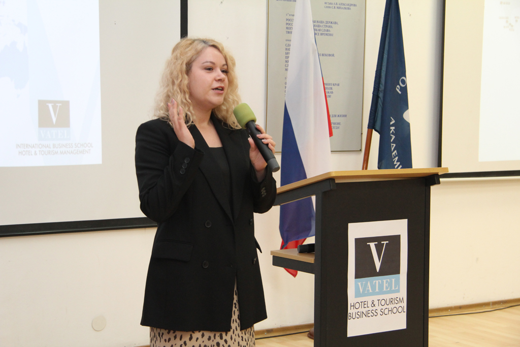 От лица выпускников «Ватель-РМАТ» выступила Антипова Мария, ведущий специалист дирекции онлайн-маркетинга в Проектном офисе по развитию туризма и гостеприимства Москвы.